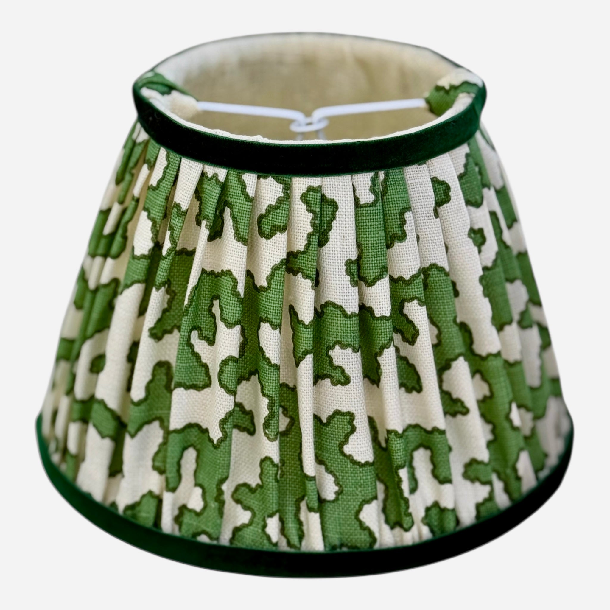 A pair of green squiggle 7” candle clip shades